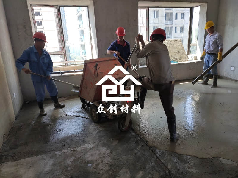 眾創材料入駐慈溪江濱之城厚水泥基自流平施工現場報道